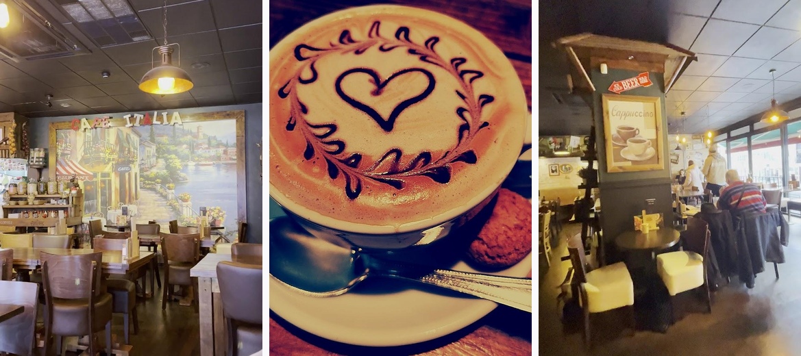 Cafe Italia offers a delightful mix of Italian and British cuisine, featuring a broad menu that includes pasta, pizzas, breakfast dishes, and homemade specials.